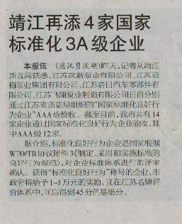 我公司通過“國家標(biāo)準(zhǔn)化良好行為企業(yè)AAA級”驗收